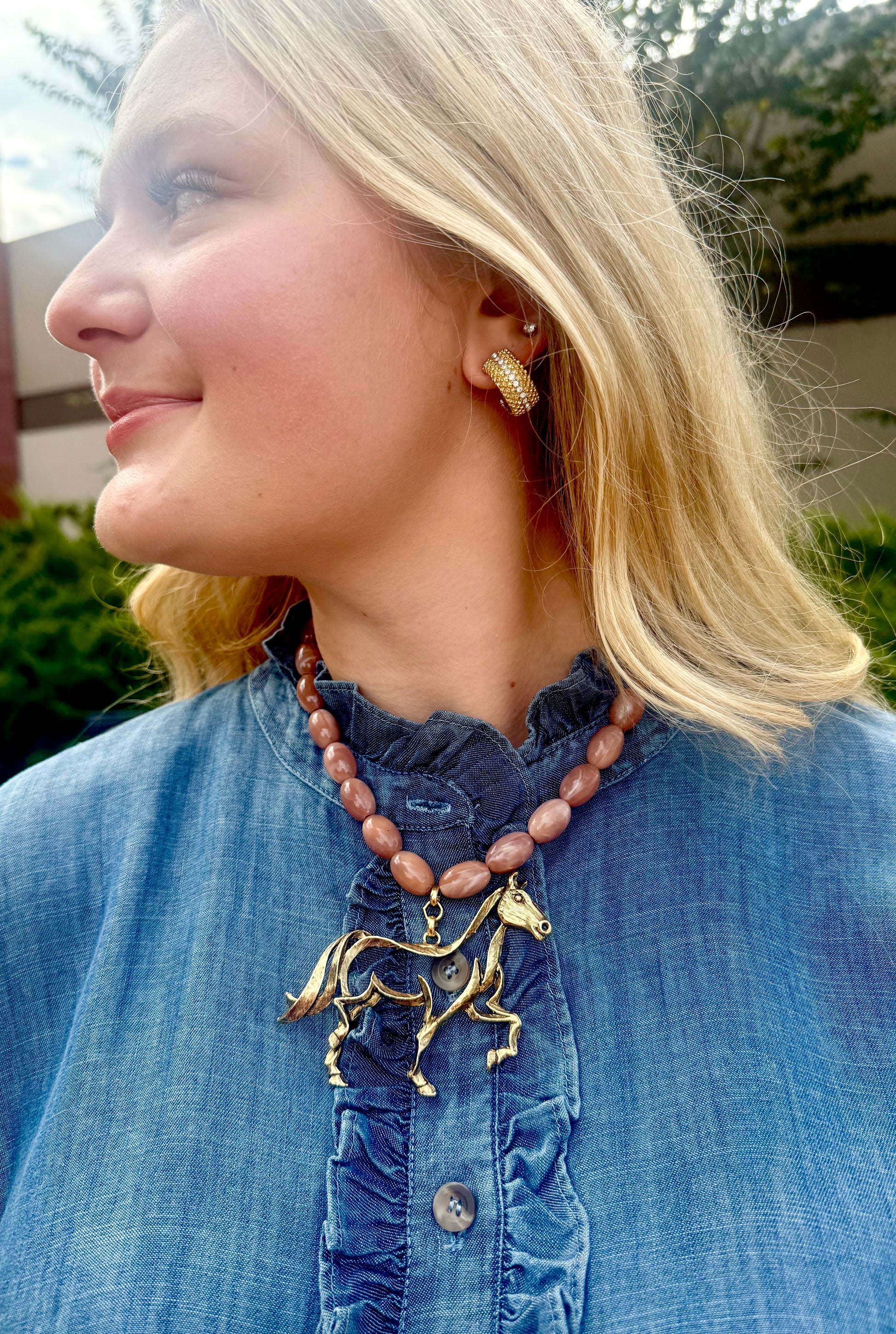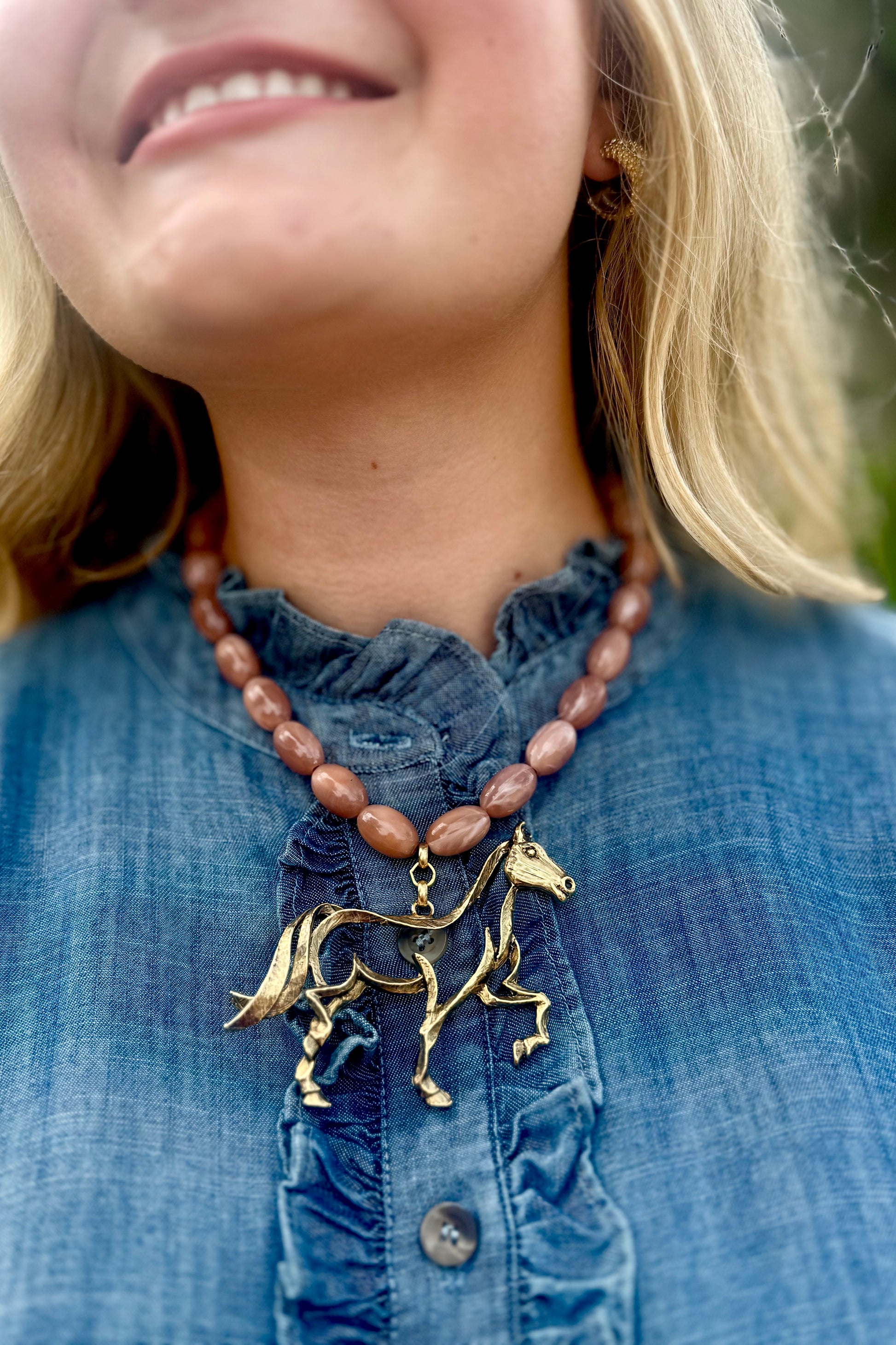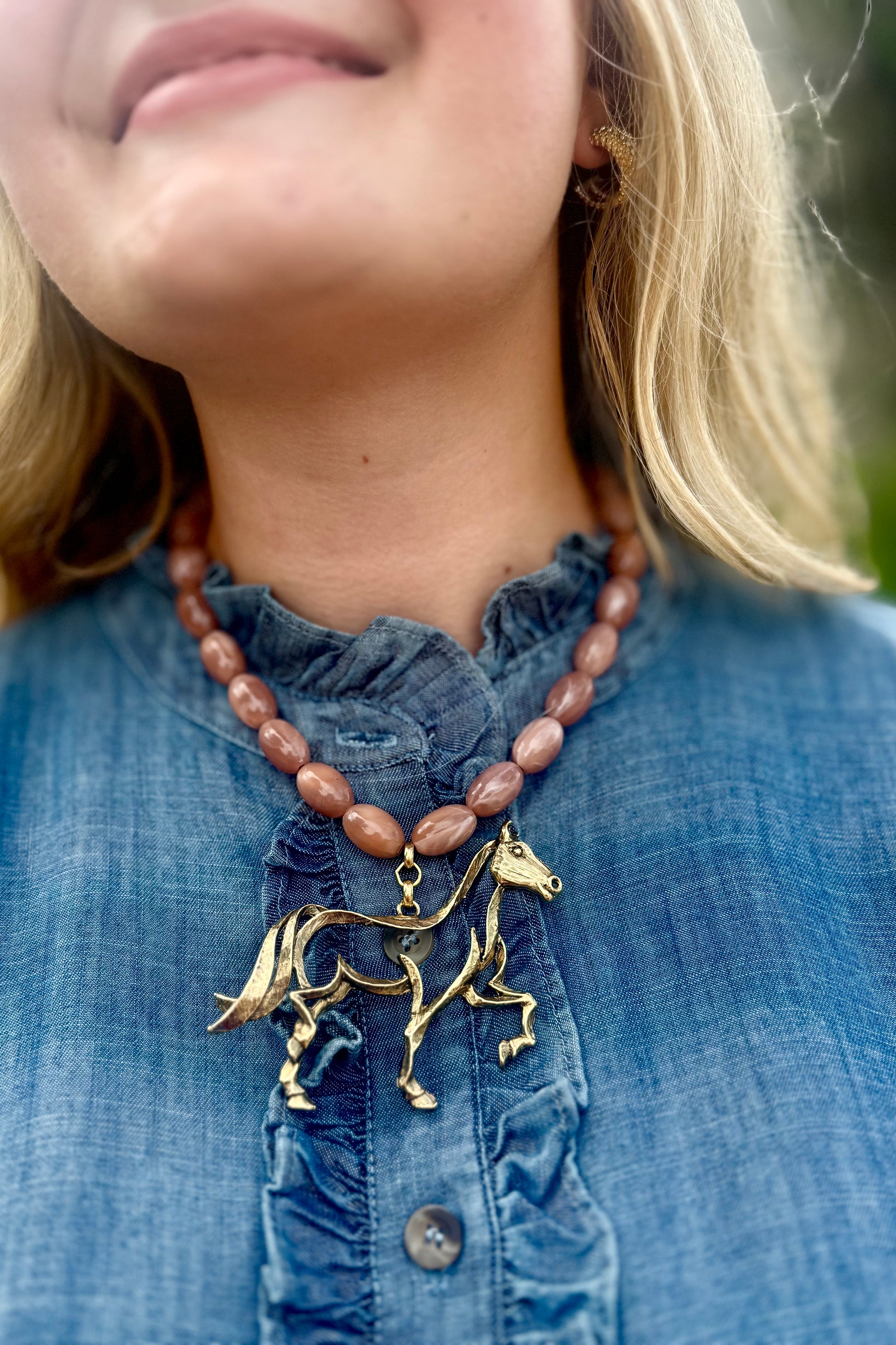 Beaded Brown Horse Necklace