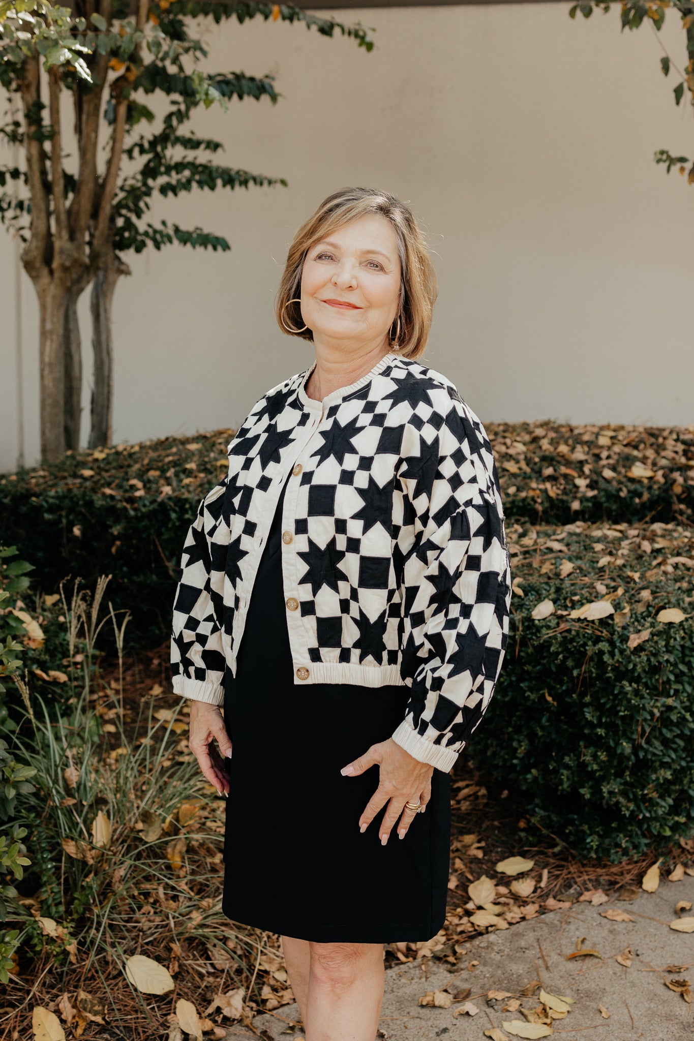 Wrap yourself in cozy charm with the Black/Cream Quilted Star Jacket by Ivy Jane. Its playful star pattern adds a fun twist to chilly days, while the quilted design keeps you warm and snug all fall and winter long. Perfect for layering, this jacket brings both comfort and style to your seasonal wardrobe.