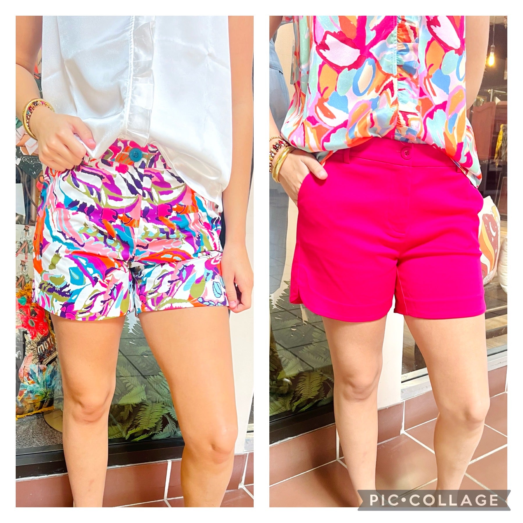 Make a stylish entrance into the sun with these shorts by Jade! They feature a luxurious wear in a solid fuchsia or a floral pattern and a 4.5" inseam with a side slit for added flair. For the perfect pairing, wear our Jade Ruffles Sleeveless Blouse on top for a complete ensemble.