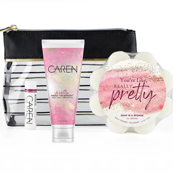 The Really Pretty Gift Set features some of our favorite Caren products to include: a 2 oz. Hand Treatment; a You're Like Really Pretty Soap Sponge; a Plum Pretty Lip Balm, and a bonus cosmetic bag - because YOU deserve all the pretty things!