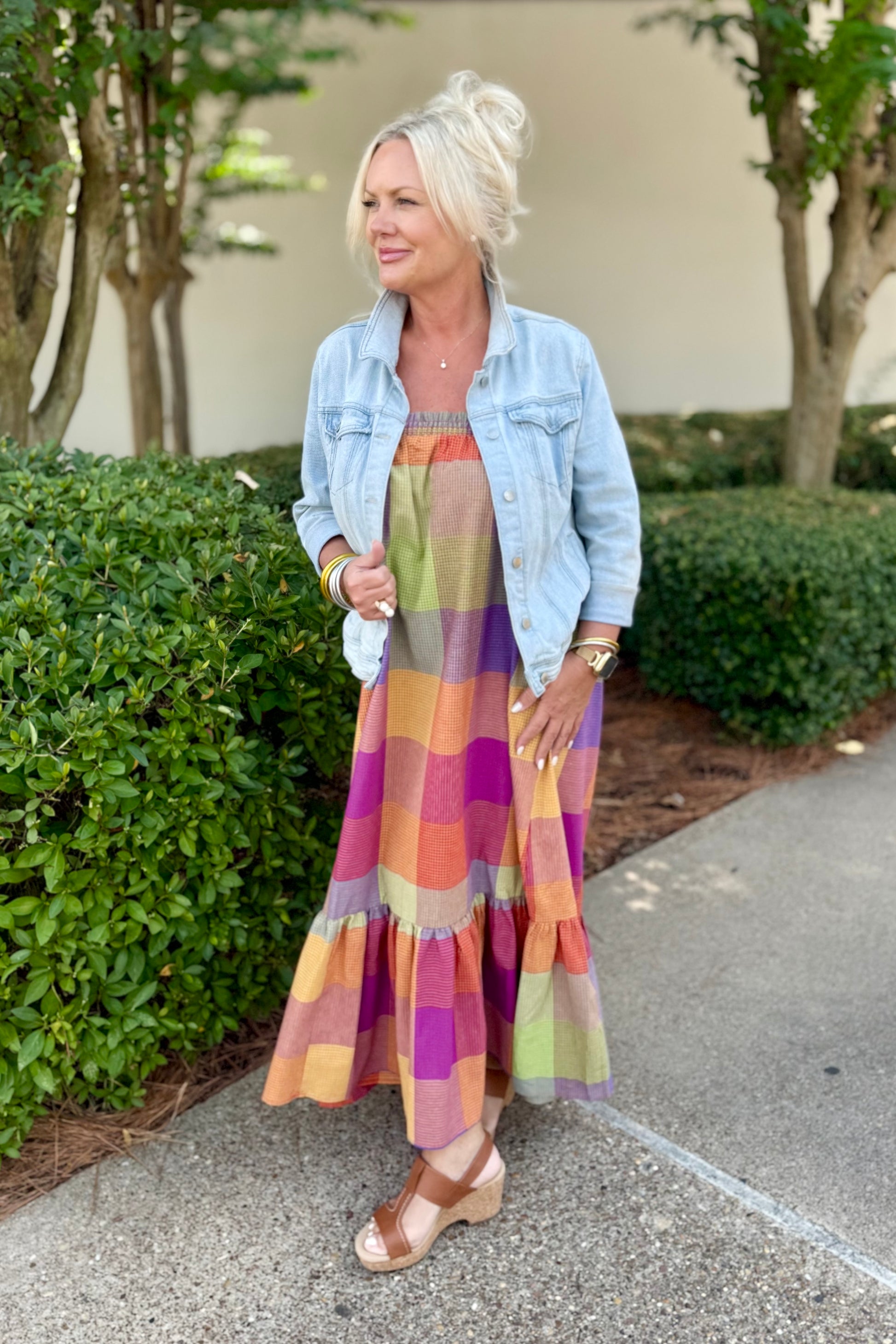 Step into sunshine with this playful checkered midi dress by Gigio. Featuring adjustable string shoulder straps, it offers a flirty fit perfect for twirling through warm days. The classic checkered pattern adds a fun touch to your wardrobe, making it a go-to for casual outings or weekend brunches. Effortlessly stylish and comfortable, this dress lets you embrace joyful moments with ease.