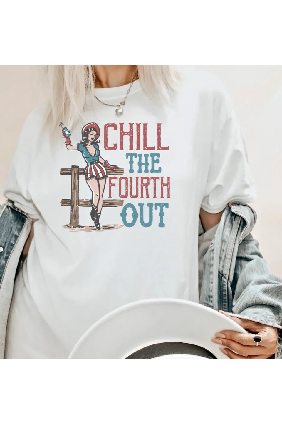 Celebrate Independence Day with a playful twist with this "Chill the Fourth Out" shirt. This sassy, patriotic graphic tee adds fun to your holiday wardrobe while keeping things cool and casual. Perfect for backyard barbecues, fireworks, or just relaxing with friends, it’s a spirited way to show your American pride.