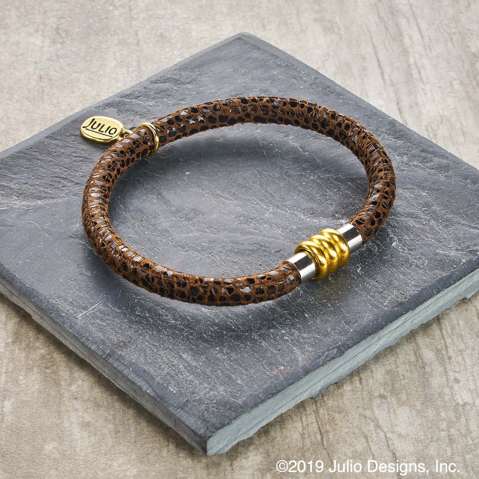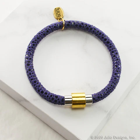 Embossed leather cording bracelet. Easy on/off with magnetic closure. Cording is 1/4" thick. Pair them with the Gumball Charmed Julio Bracelet. Handmade in Frisco, Texas