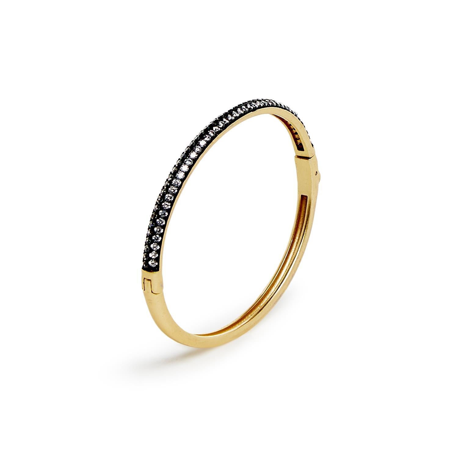 These bangles are the epitome of glamour, with its luxurious 14K gold plating and sparkling cubic zirconia. The hinged closure makes it easy to put on and take off, and since it's one size fits most, you can be sure it will look fabulous on your wrist. Whether you're dressing up for a special occasion or just want to add a touch of sparkle to your everyday look, this bracelet is sure to turn heads and make you feel like a superstar!