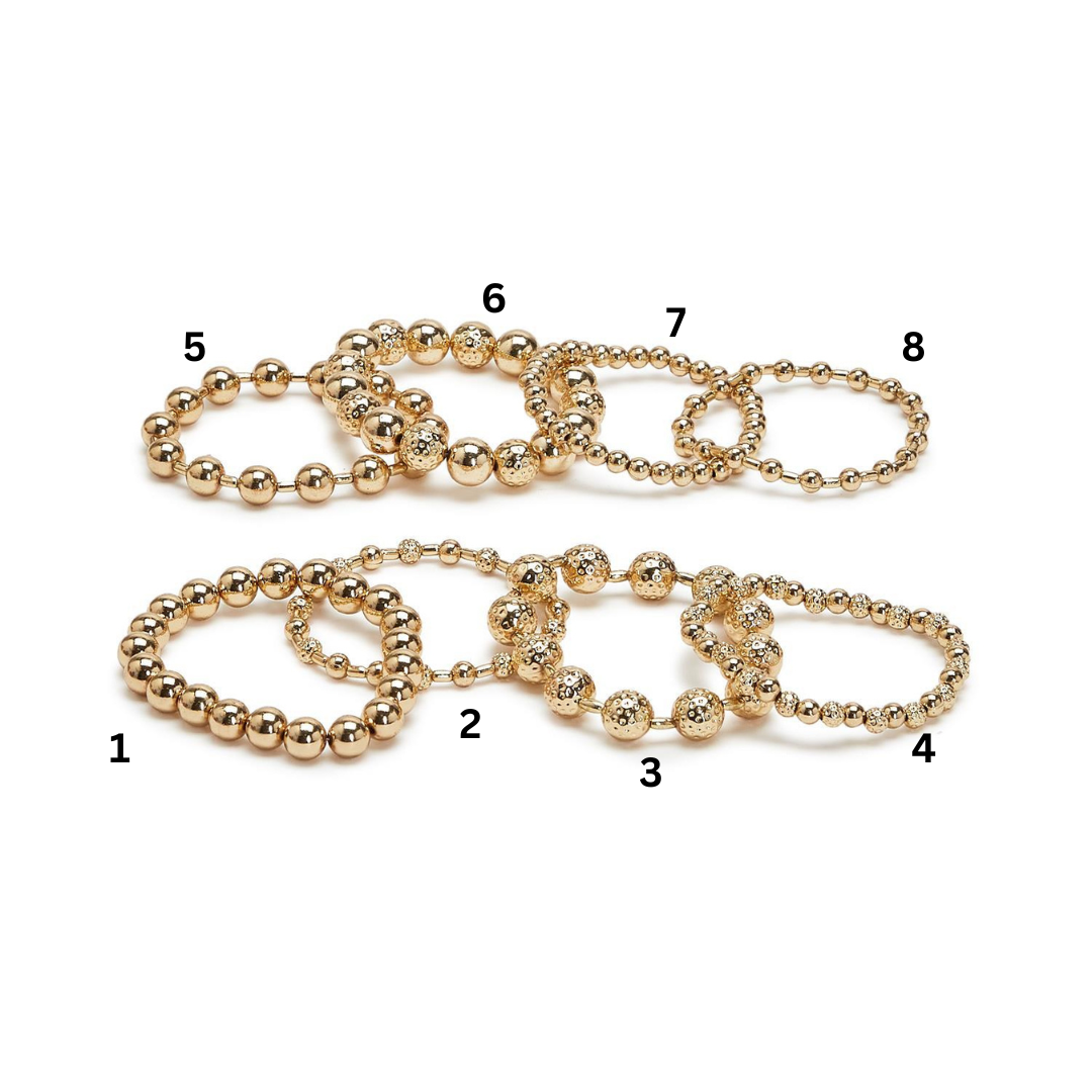 Gold Bead Stretch Bracelets, eight styles to choose from.