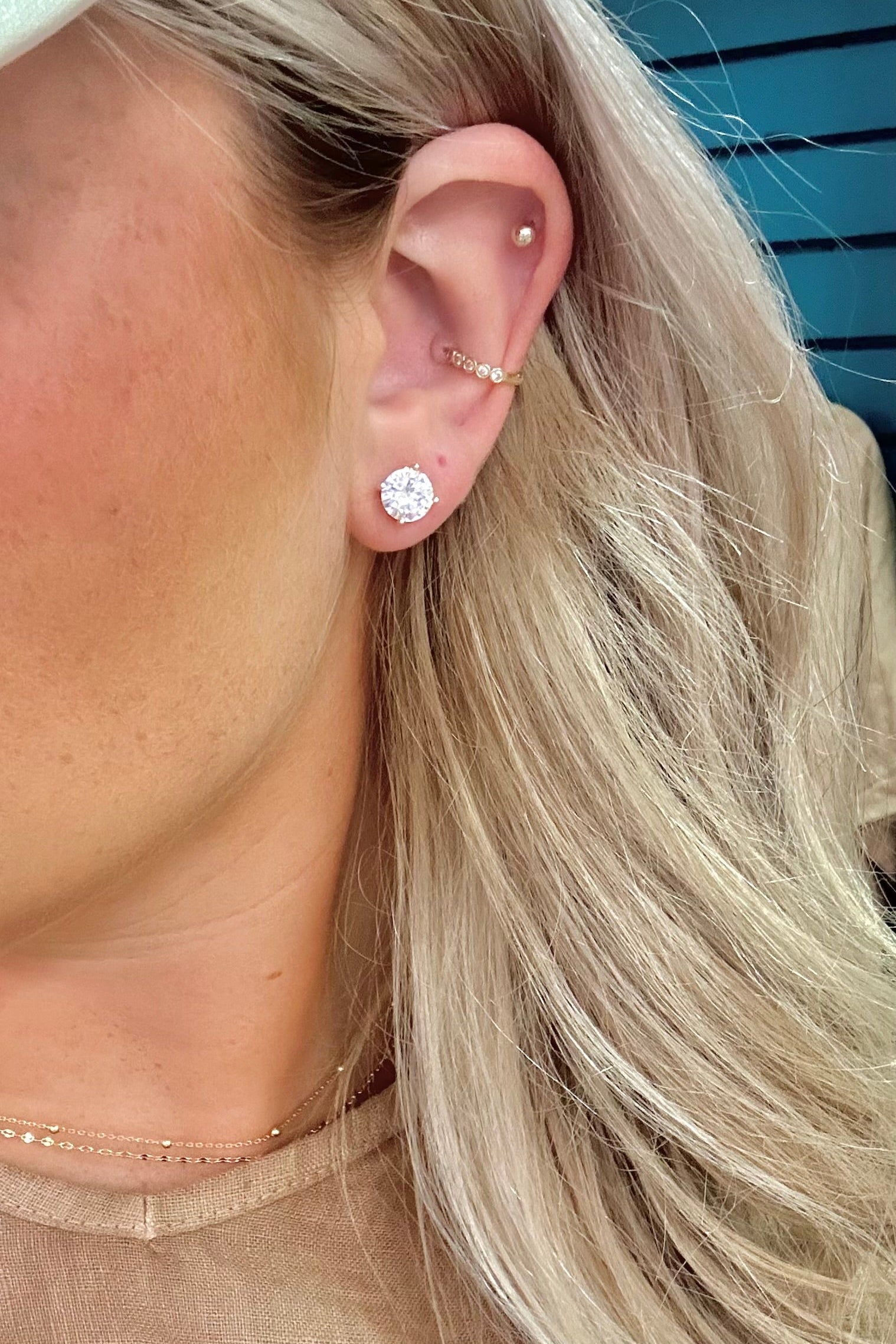 Add a touch of sparkle to your day with these 8mm gold CZ stud earrings! Perfectly petite and dazzling, they bring a playful shimmer to any outfit. Whether dressing up or down, these studs are your new go-to for effortless charm and shine.