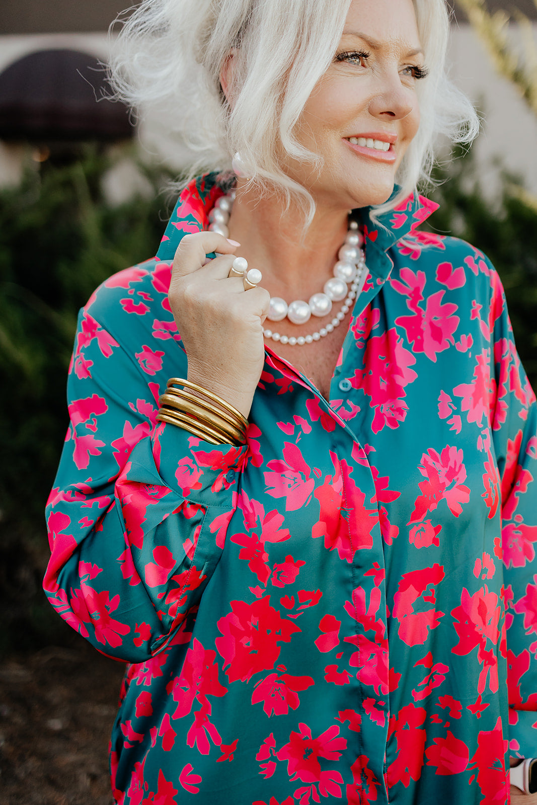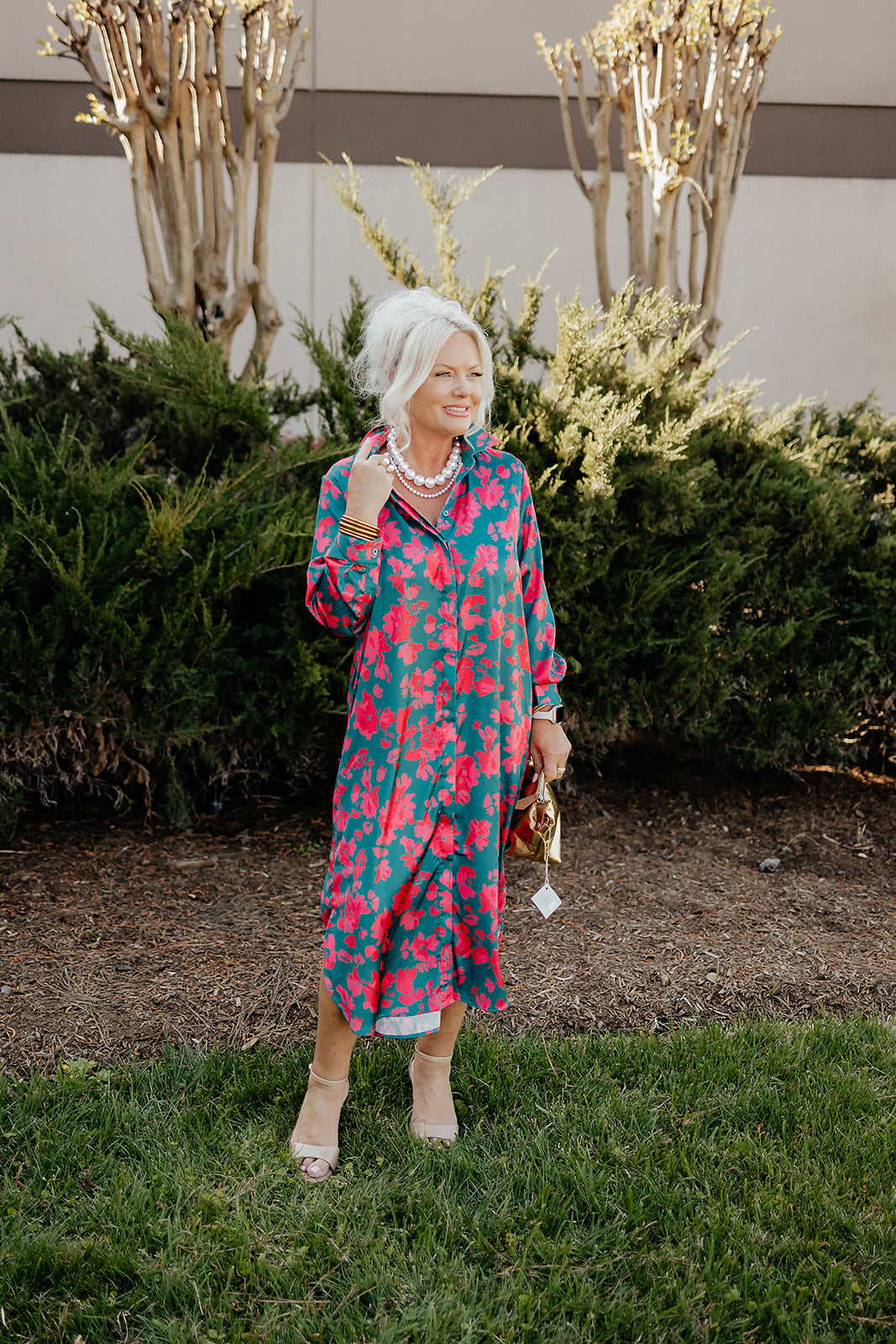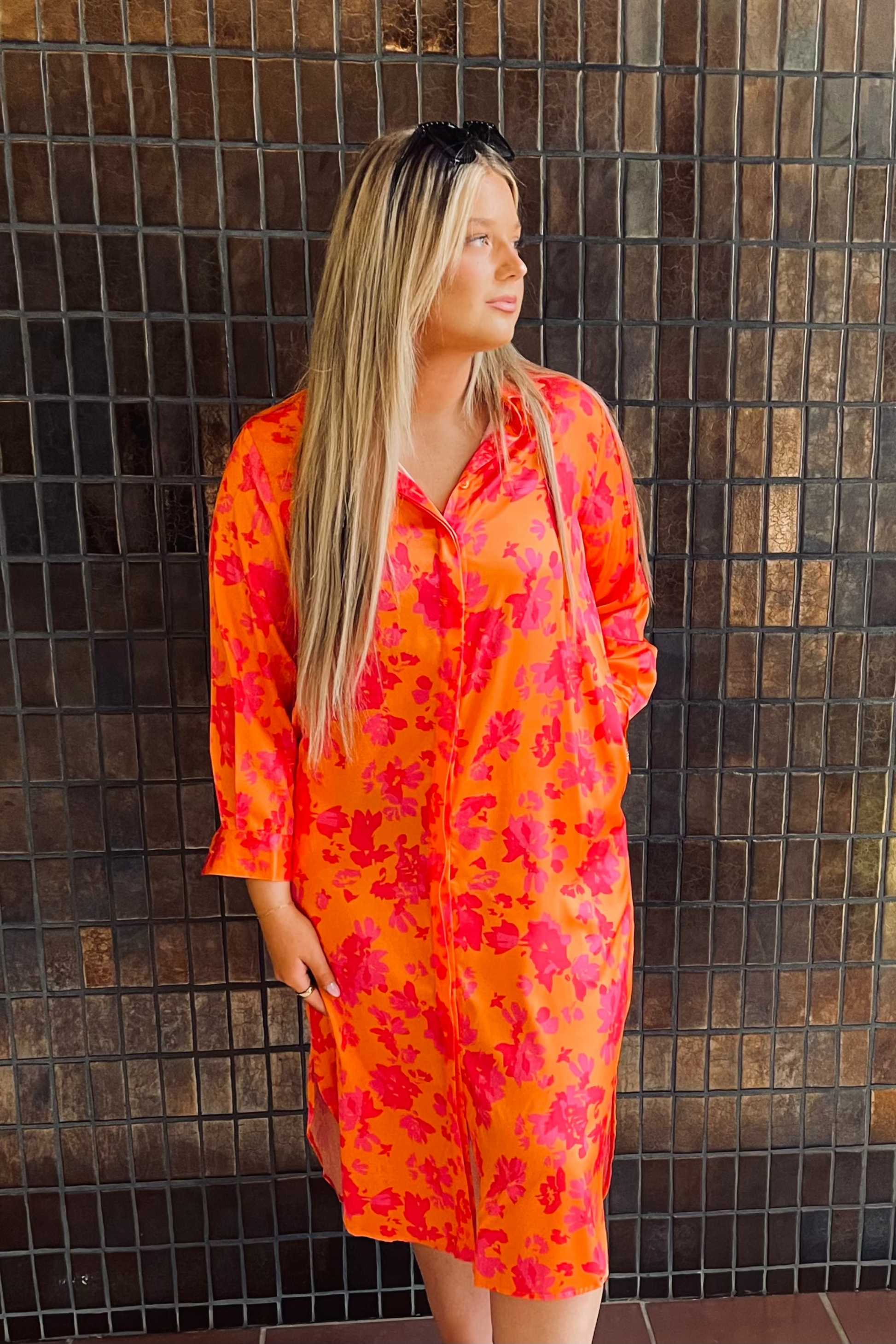 Step into spring with our Jace Woven Print Dress! This long dress features a vibrant green or orange hue and is adorned with eye-catching hot pink floral prints. A perfect blend of style and comfort, this dress is sure to make a statement on any occasion. (Get ready for compliments!)