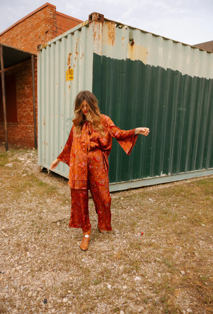 Slip into effortless elegance with the Lady Cherie Set—a playful two-piece featuring a hand-drawn satin top with a charming tie neck and flirty side slits, paired with comfortable drawstring pants that cinch at the waist. Perfect for lounging in style or dressing up for a night out, this set brings together comfort and sophistication in one fabulous package.