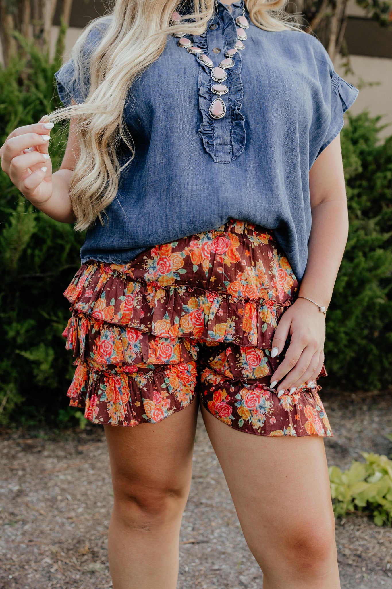 Meet the Linda short! This playful brown rose skirt by Sister Mary features charming ruffles and a comfortable drawstring waist, making it perfect for twirling through sunny days. Its short length adds a flirty touch, ideal for casual outings or lively gatherings. Embrace effortless style with this fun and feminine skirt!