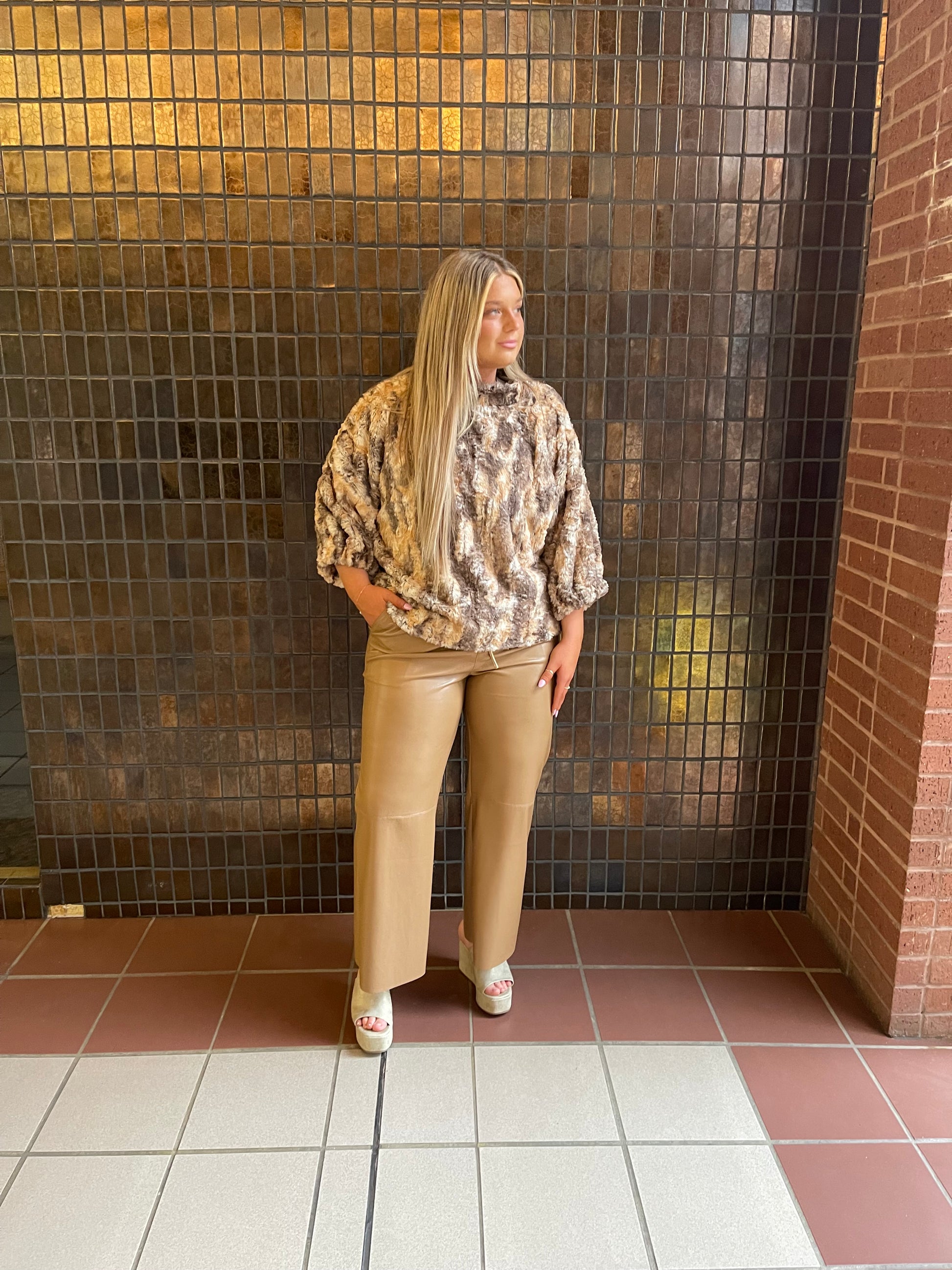 Luscious caramel hue, faux leather drawstring pant with the softest texture. They run big, so size down and slay effortlessly.
