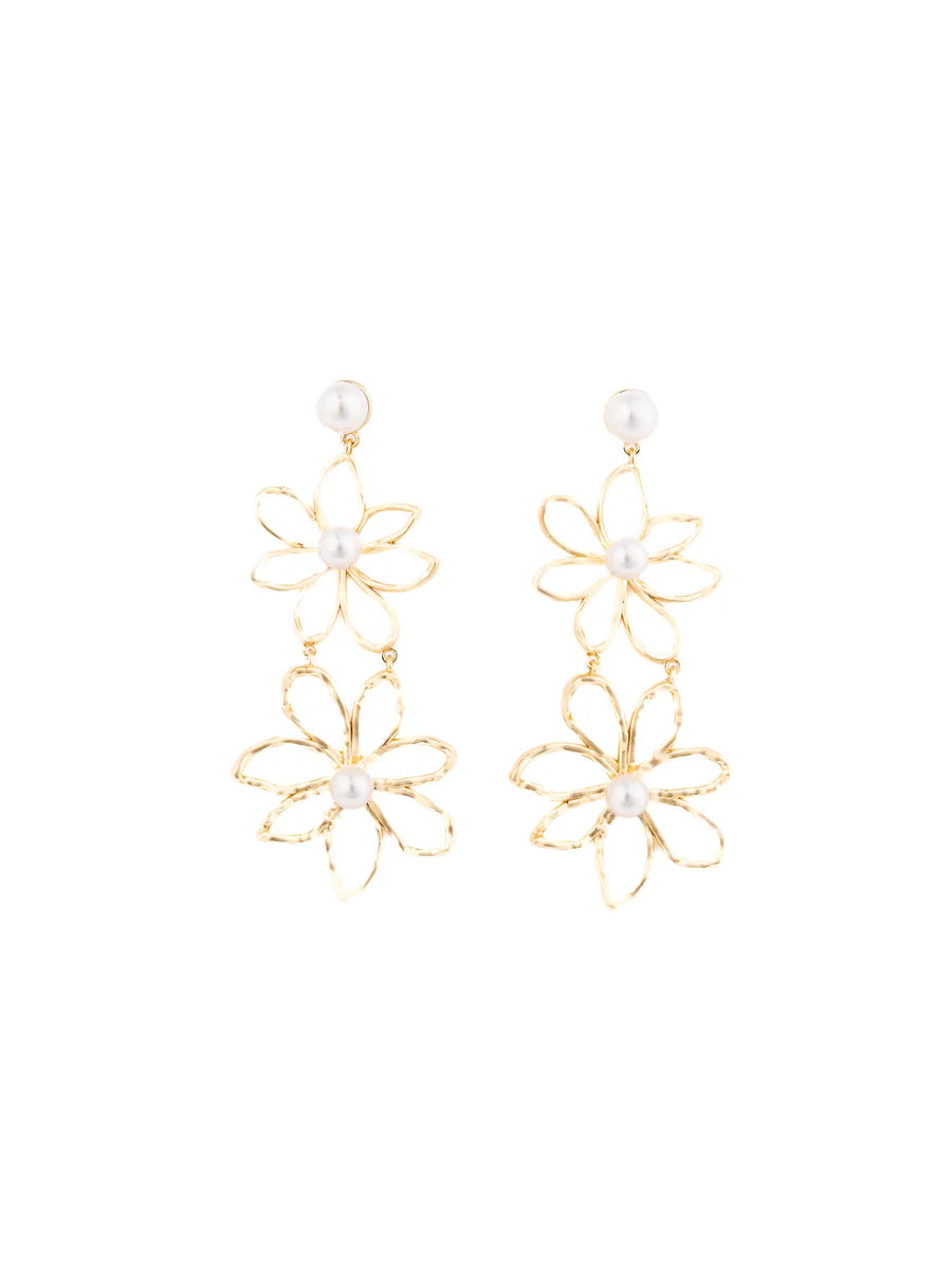 Add a touch of whimsy to your look with the Payton Earrings. These playful dangly earrings feature delicate gold flowers adorned with lustrous pearls, creating a charming blend of elegance and fun. Perfect for brightening any outfit with a splash of floral sparkle and graceful movement.