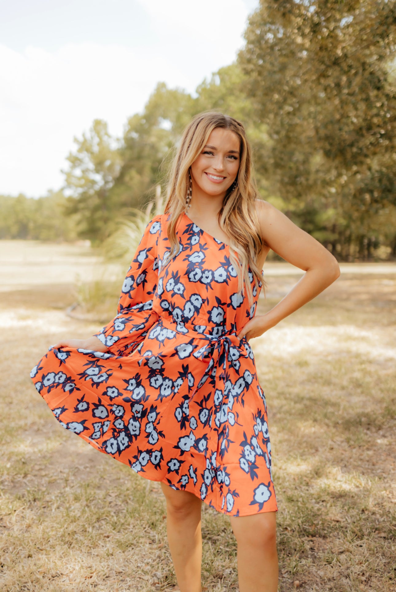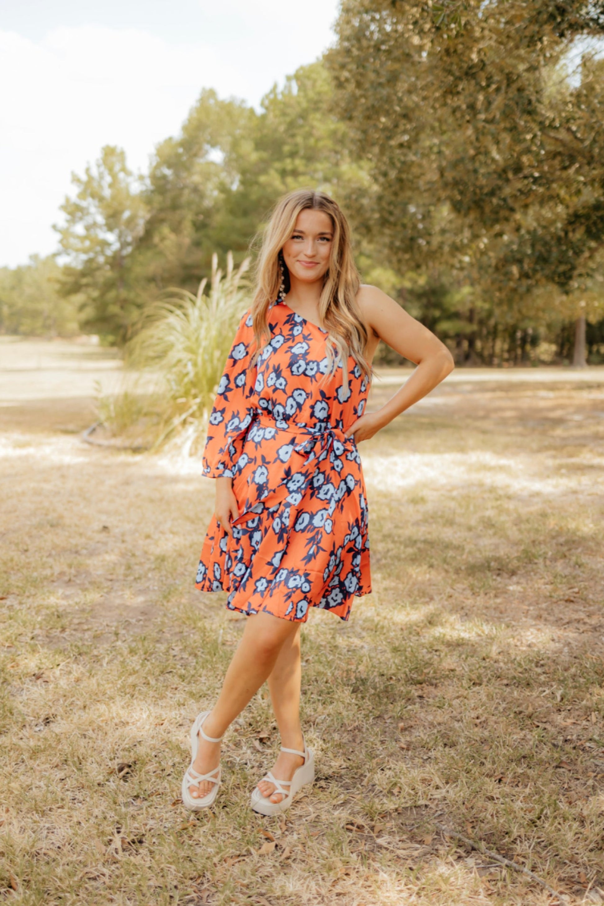 Be a showstopper in this poppy one-shoulder flared dress! It will make you stand out in any room with its eye-catching silhouette and vibrant fabric. Get ready to make a real statement – in more ways than one!