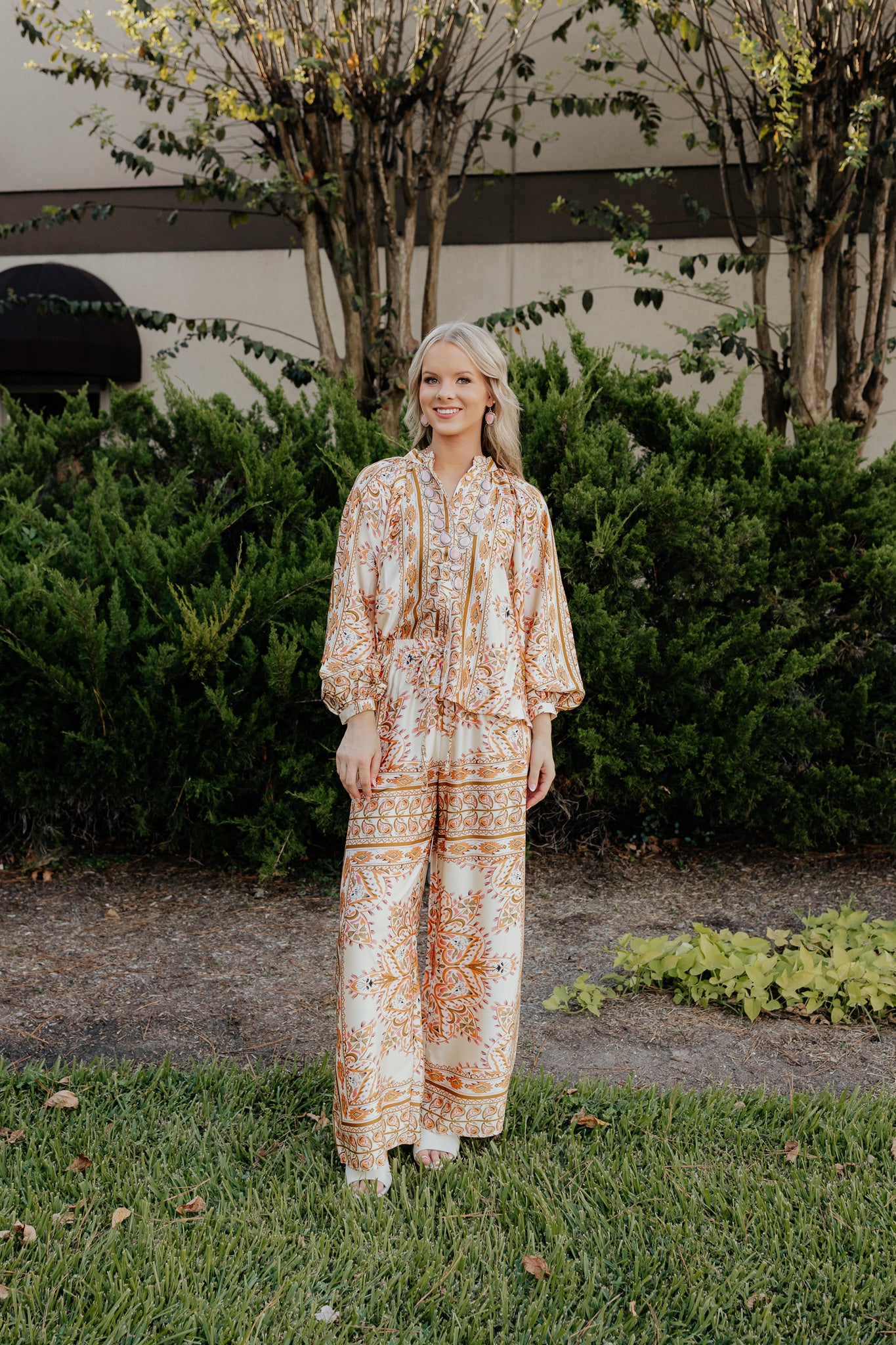 Turn heads with this playful scarf print blouse, featuring a captivating, mirrored pattern and a sleek covered button placket. It’s the perfect piece to add a touch of fun and flair to your outfit while keeping things effortlessly chic.
