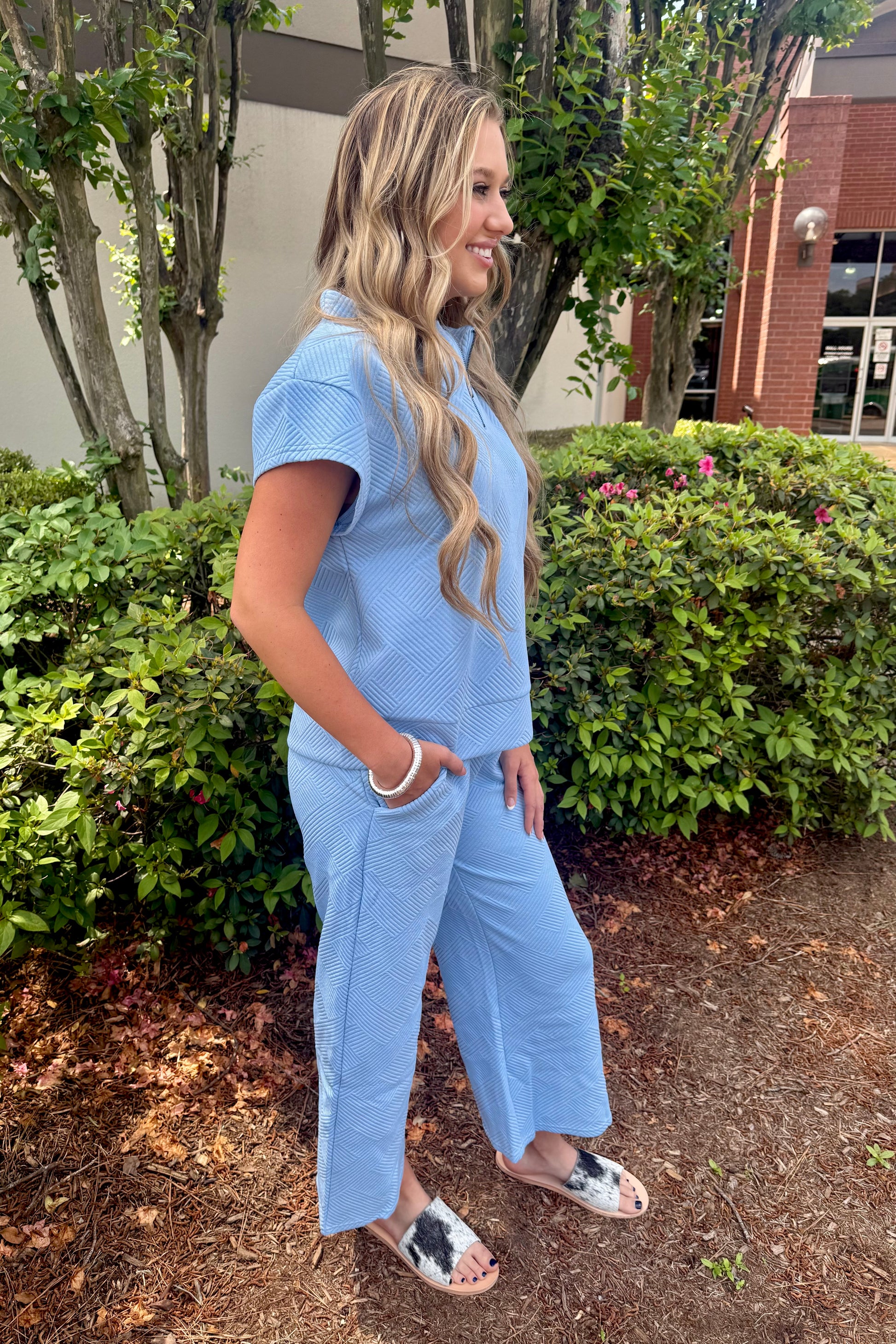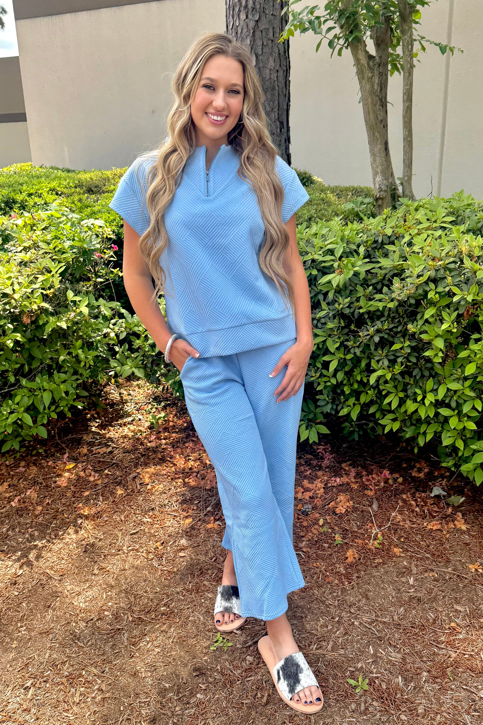 Bring your casual wear to the next level with See and Be Seen: Textured Lounge Set. Available in Baby Blue with half zip. This set is perfect for those who want to make a statement without sacrificing comfort. The textured design adds a touch of unique style to your look. Stay stylish and comfortable all day long.