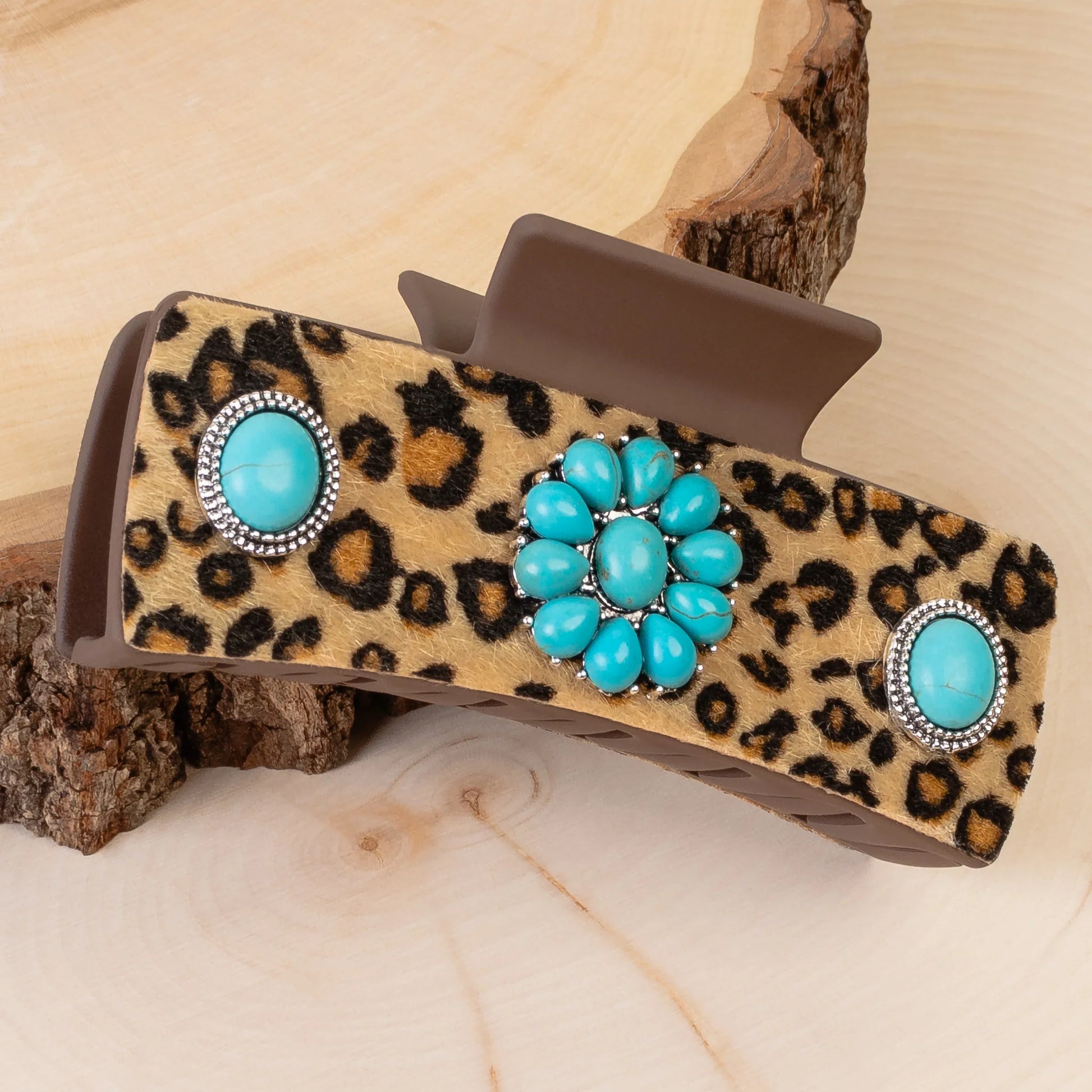 Add a pop of playful charm to your look with the Squash Blossom Claw Clip. Adorned with vibrant turquoise gems, this chic accessory brings a touch of western flair to your hairstyle. Perfect for effortlessly stylish days, it holds your hair securely while making a bold, fun statement.