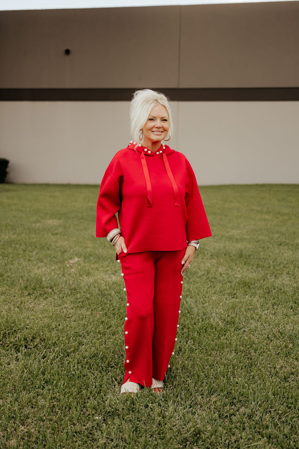 These Joh sets are the ultimate combination of cozy and chic. The irresistibly soft smooth knit texture infuses a cozy element into your closet. With pearl trim on the hood and pant seam, your everyday outfit transforms into a playful and stylish ensemble. Say farewell to mundane attire and embrace a quirky and trendy vibe!