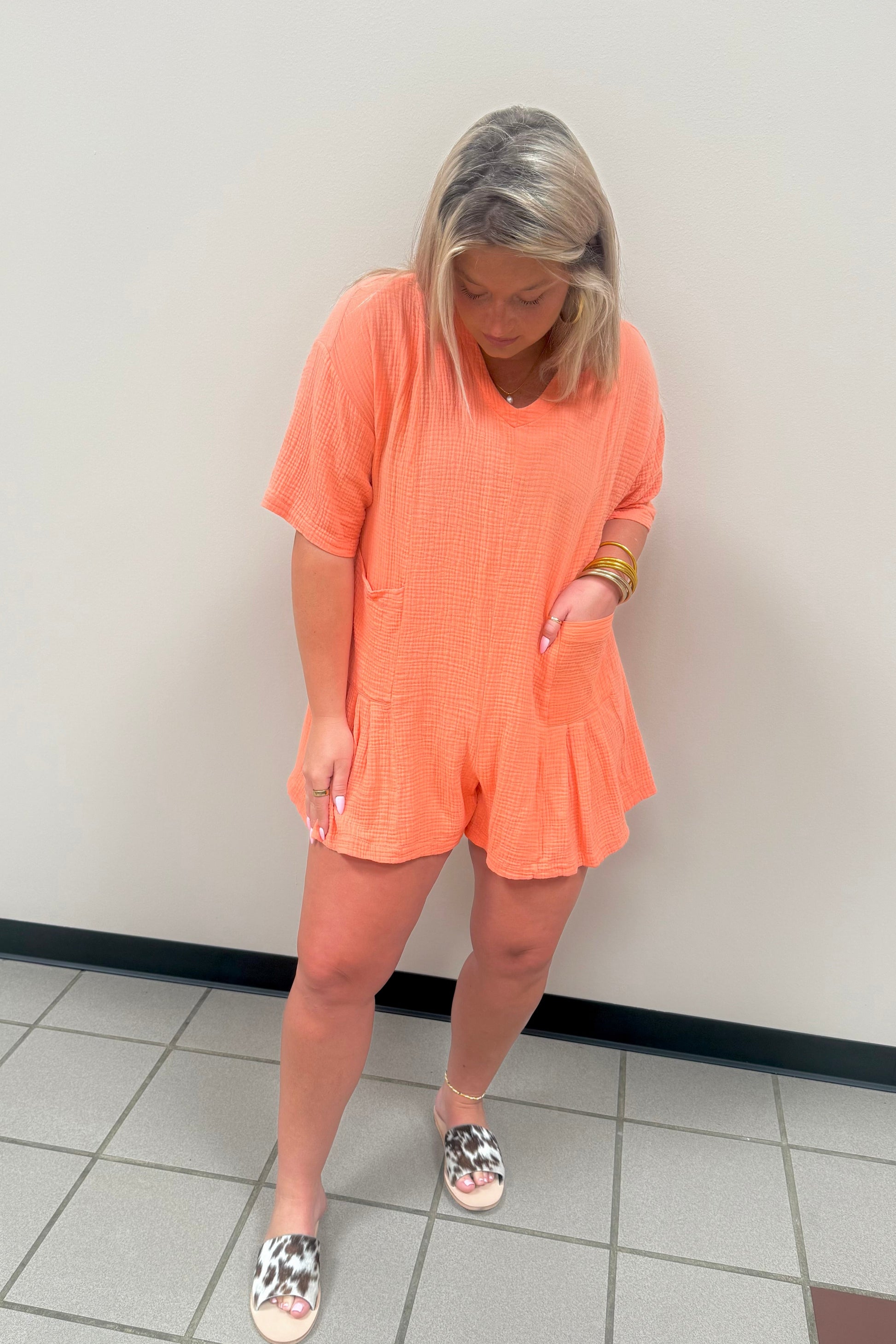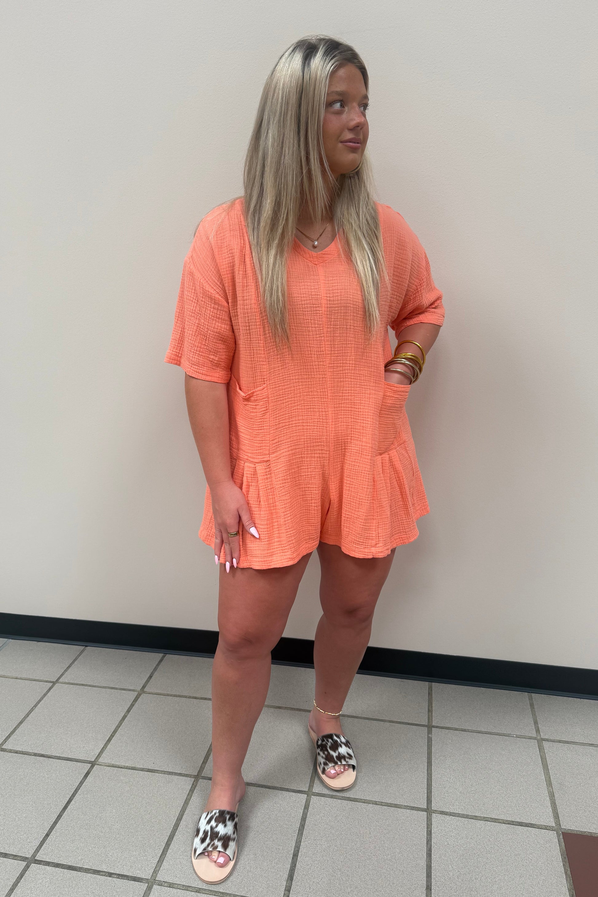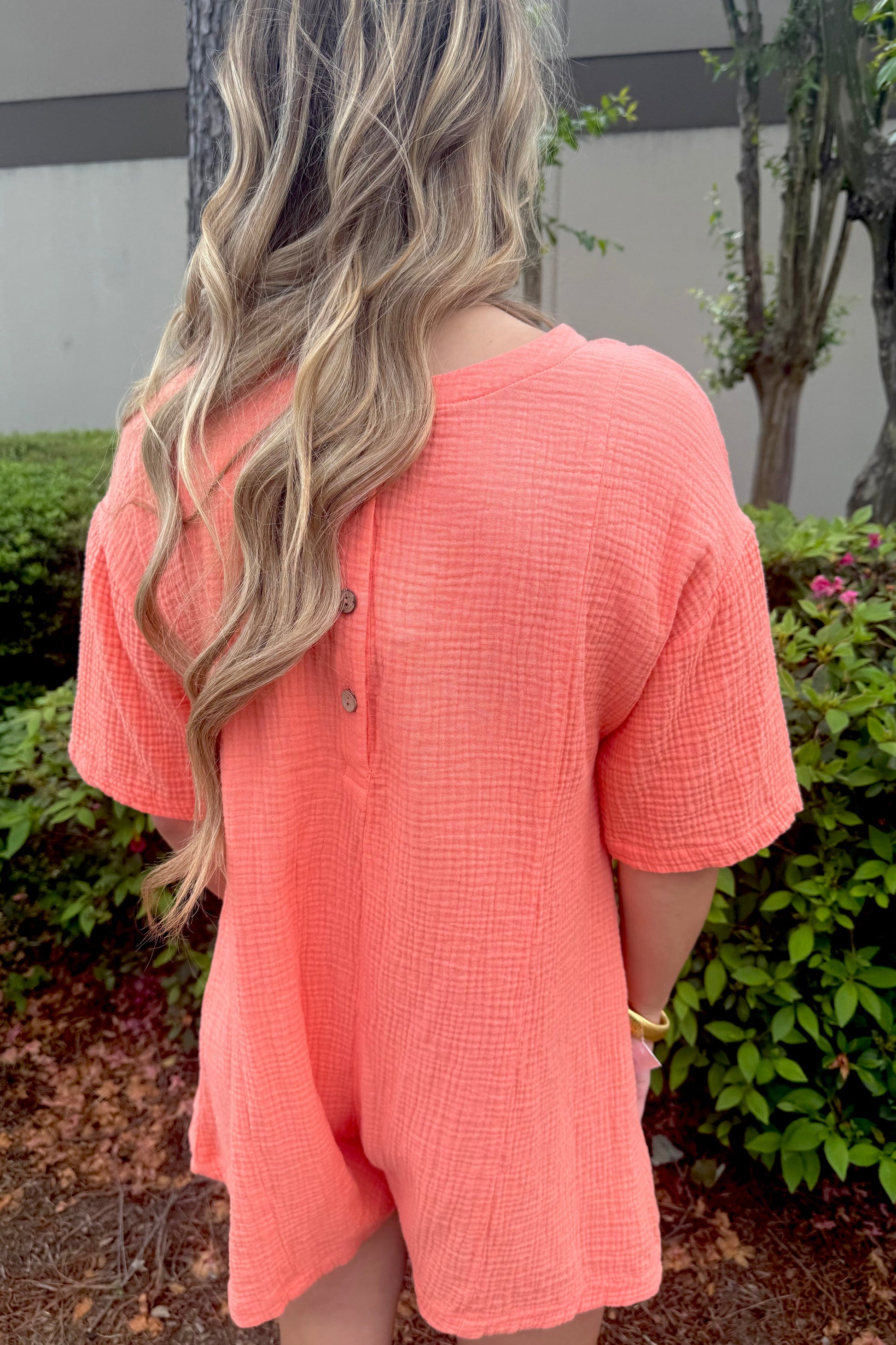 Step into style with the Uncle Frank Romper! Made from 100% cotton, this romper features a unique wood button detail down the back and convenient front pockets. Available in melon and lime, it's the perfect combination of comfort and fashion.