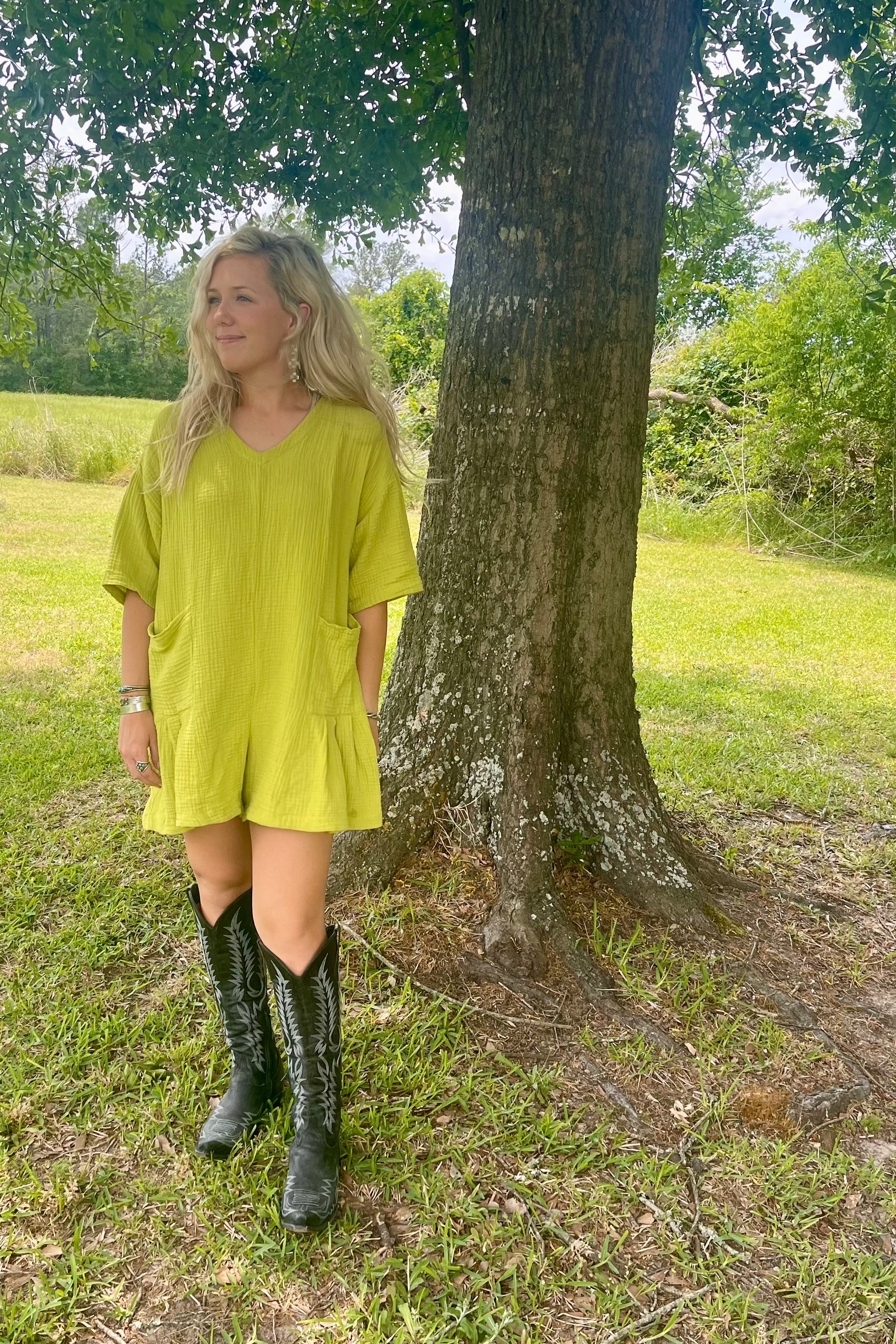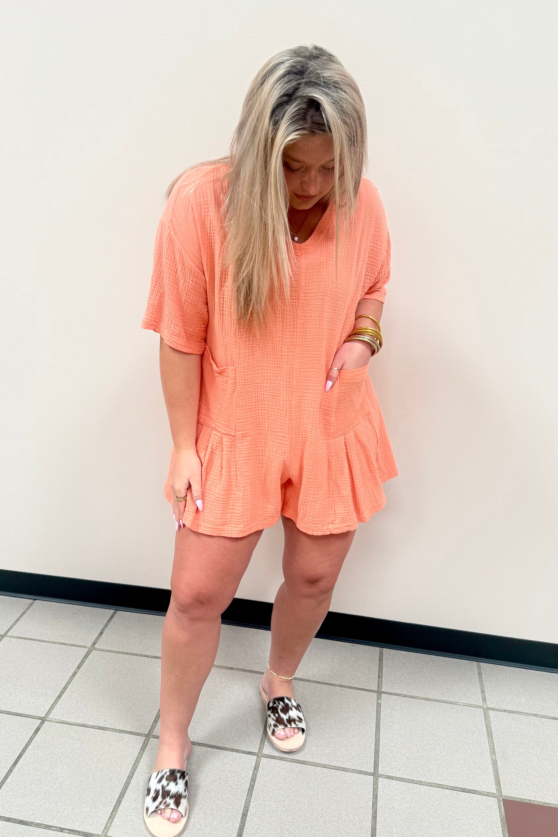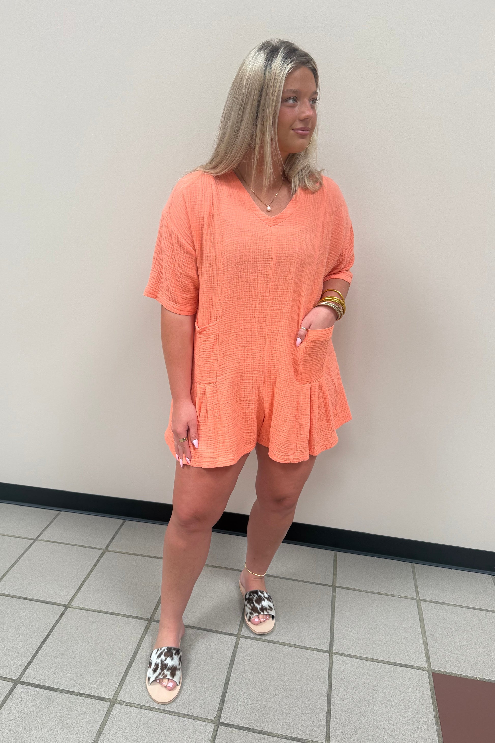 Step into style with the Uncle Frank Romper! Made from 100% cotton, this romper features a unique wood button detail down the back and convenient front pockets. Available in melon and lime, it's the perfect combination of comfort and fashion.