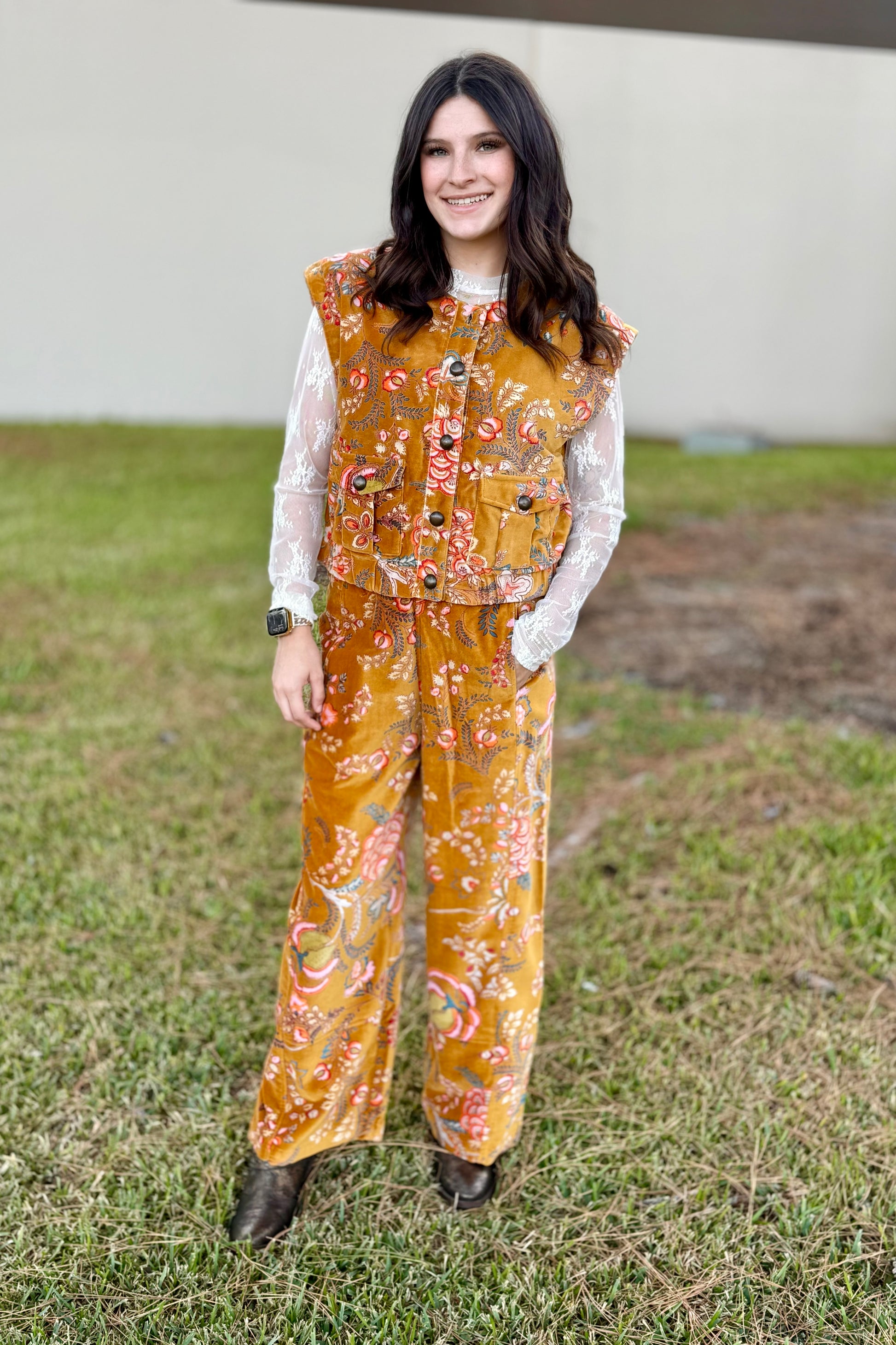 Meet your new favorite layering essential—this charming velveteen vest by Ivy Jane bursts with botanical flair through its exquisite floral pattern. Crafted from plush velveteen, it's the kind of piece that makes getting dressed feel like an adventure. Throw it on over anything and watch your whole vibe transform. Sophisticated? Check. Fun? Absolutely. The perfect excuse to add a little extra pizzazz to your everyday style.